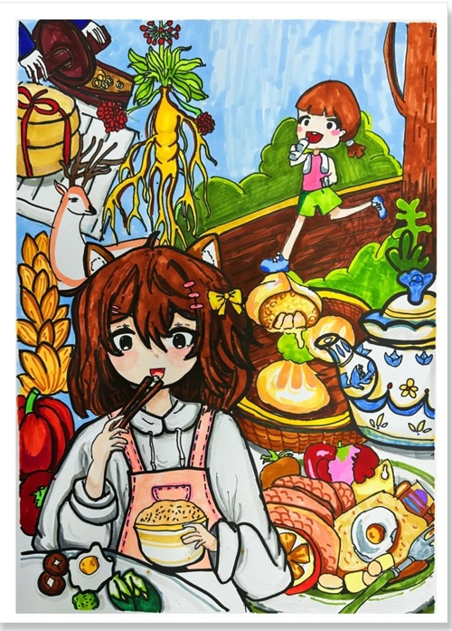 据了解,自2024年6月大赛启动以来,全省儿童青少年积极响应,围绕“《中国公民健康素养——基本知识与技能(2024年版)》”和“中医药文化”主题,创作了219副手绘作品。这些作品内容丰富、形式多样,充分展现了儿童青少年对健康素养的深刻理解和独特创意,也体现了大赛的广泛参与度和作品的高质量。