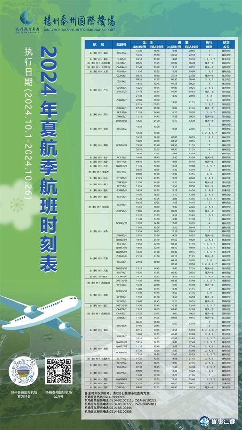 扬州泰州国际机场换季航线登场 缤纷航线畅行无忧
