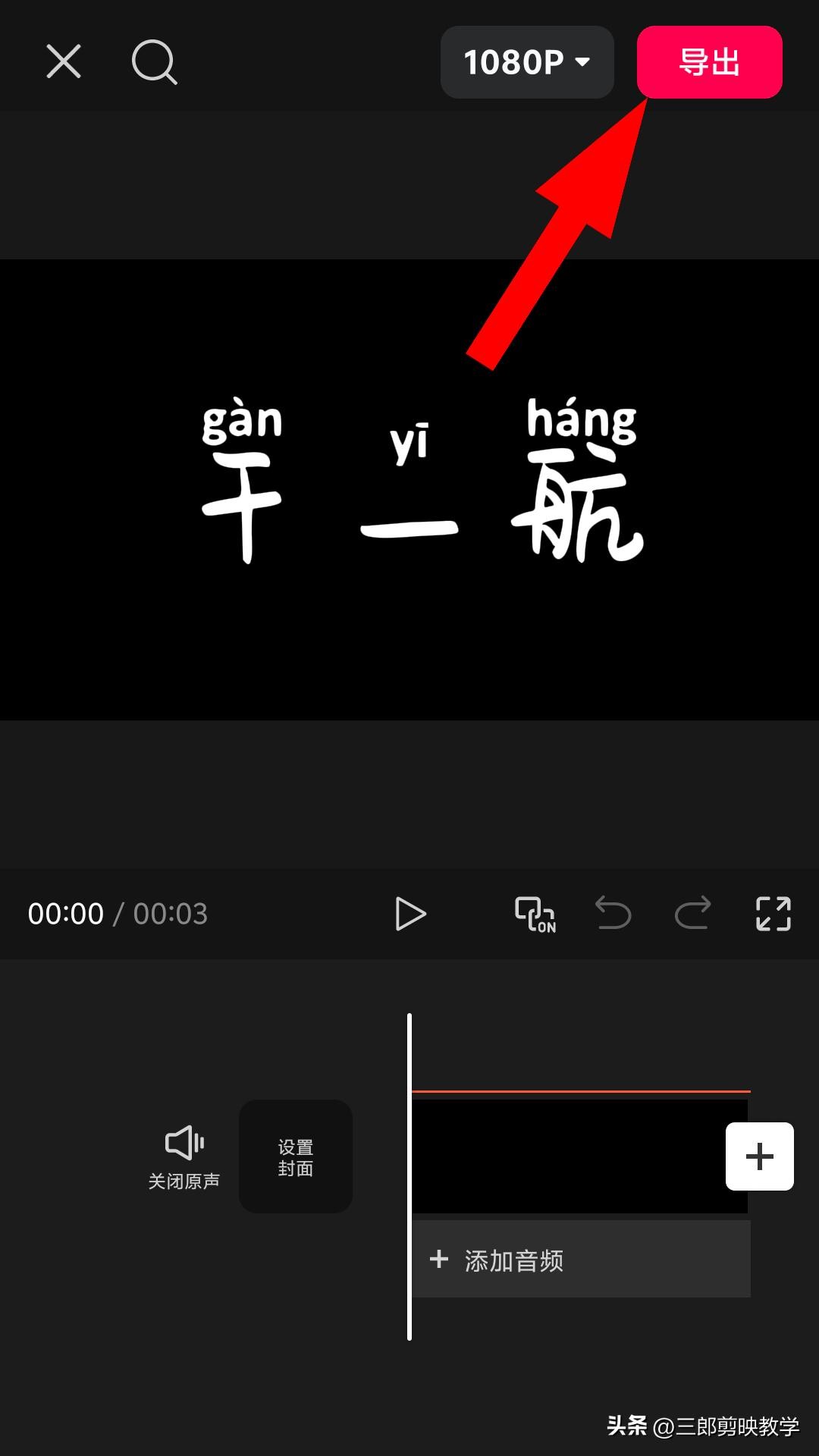 步骤一,先把“干一行”的文字导出为视频,背景用黑色,或者其它纯色背景;