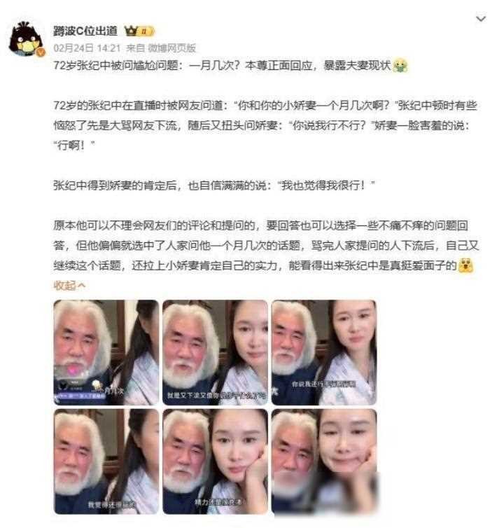 太强了!72岁张纪中宣布42岁爱妻怀第四胎,原配大女儿已经4