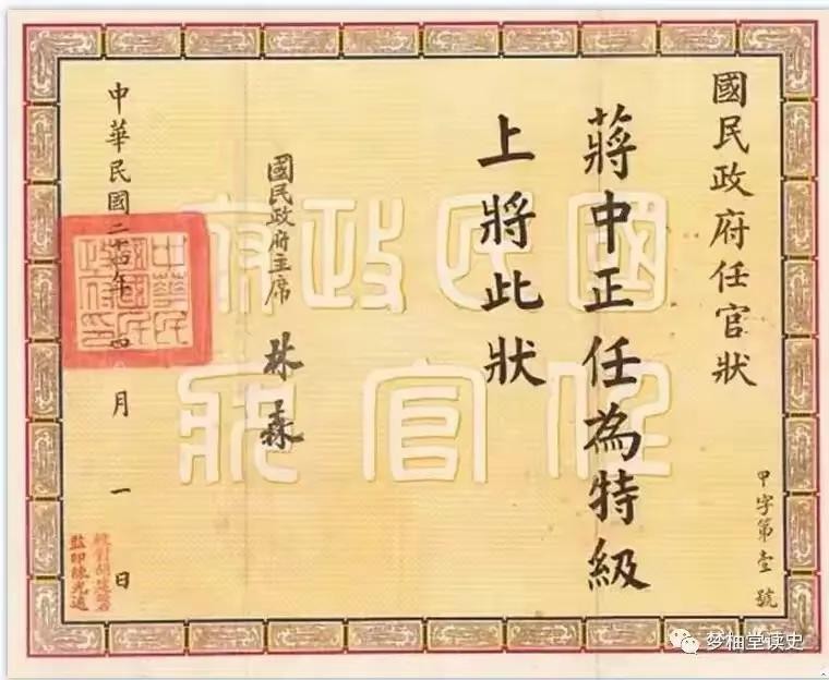 蒋介石特级上将任命状