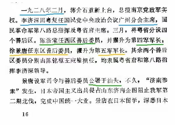 【图20,凌仲冕《再述陈济棠》(《广州文史资料存稿选编 第4辑 军政类》第375—415页):将来自己有用时,就掌握得稳了,李济深这个算盘,为自己并为适应当时形势计,是打的不错的。