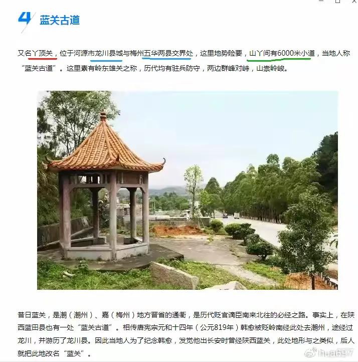 【图44,蓝关古道,又名丫顶关,位于河源市龙川县城与梅州五华两县交界处,这里地势险要,山丫间有6000米小道,当地人称“蓝关古道”。这里素有岭东雄关之称,历代均有驻兵防守,两边群峰对峙,山崇岭峻。】