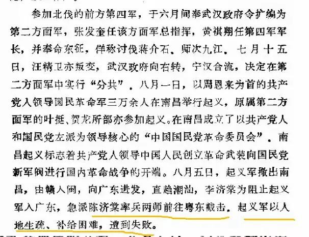 蒋介石“四一二”叛变革命后,以汪精卫为首的所谓国民党“左派”,于7月15日也暴露了反革命的原形,在武汉分共,张发奎是拥汪主要力量,唯汪马首是瞻,也把革命的第二方面军恶化为反革命的暴力了。但汪精卫还以革命自封,以国民党的“正统”自居,指南京的特别委员会为篡党,恃张发奎的第二方面军,喊出“夹攻中的奋斗”口号。张发奎由鄂入赣,至南昌,原是出兵去打南京的,共产党人以革命不能中断,原任24师师长的叶挺和20军军长贺龙及其他在共产党掌握中的部队,于8月1日起义,予汪,张以致命的打击,第二方面军从此支离破碎了。陈铭枢在北伐初期,早已与张发奎争功暗斗,愈斗愈烈,陈终不敌,把11军放弃了,由朱晖日接长。经此大变,陈铭枢嫡系蔡廷锴,蒋光鼐便率领余部,奔向福建,回归原主,和张发奎公开分裂。(华697注,根据《张发奎口述自传》蒋光鼐也弃职了,留下来的只有蔡廷锴,张任命他为第10师师长,)叶,贺挥军南下,张发奎如仍留在赣,鄂,又怕受不了唐生智的压迫,难以自存,只好扬言追击,遂亦移师南指。叶,贺南下是入粤东,张部南下却趋粤北,事实上是追无可追,击更无从击的。不过是借追击之名骗人,作图粤之举以备再起而已。】