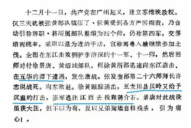 I 我援军徐景唐,黄绍竑各部赶到,与第四军决战于五华附近淡江墟,结果第四军失败,许志锐阵亡;