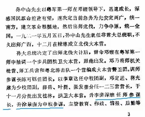 C,1921年12月,李济深任师参谋长,升徐景唐为中校参谋;